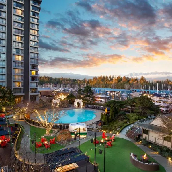 Localizado a 2 km do Estádio BC Place, este hotel de Vancouver dispõe de piscina aquecida ao ar livre e banheira de hidromassagem. Todos os quartos incluem TV de tela plana de 42".