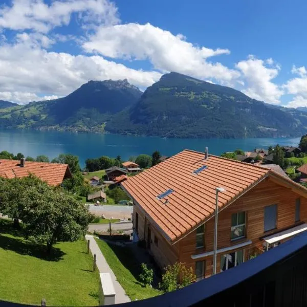 Offering panoramic views over Lake Thun and the Swiss Alps, this hotel is 5 km from Spiez, a 10-minute drive from Interlaken and 15 minutes to Thun.
