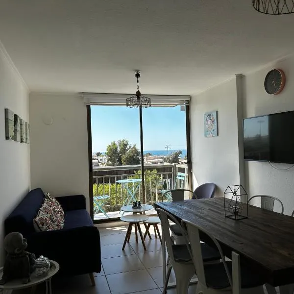 Departamento con vista al mar坐落于Atacama的卡尔德拉,拥有阳台。内部提供私人停车位。 这家公寓配有1间独立卧室、设施齐全的厨房以及1间浴室。这家公寓也配备1间浴室。 这家公寓距离曼萨海滩(Mansa)有1.9公里。科比亚波机场距离住宿有23公里。
