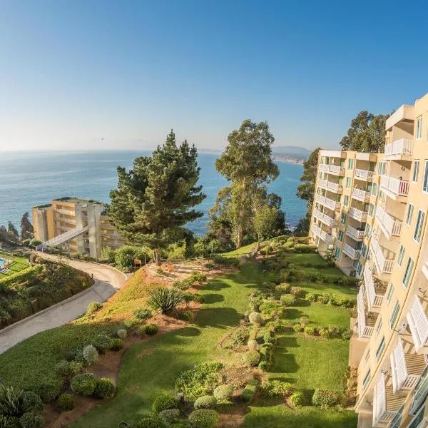 Depto Cau Cau V Region de Valparaíso Full equipado享有市景,配备季节性室外泳池、健身中心和花园,距离考奥考奥海滩(Playa Cau Cau)约有5分钟步行路程。这家海滨住宿的客人可以使用乒乓球桌和免费私人停车位。...