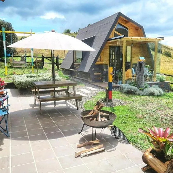 Cabaña Rural en Gachetá muy cerca de Bogotá - Santa Jacoba坐落于Gachetá,提供花园和露台。住宿可安排私人停车位,需额外收费。 这家小木屋提供2间卧室、起居室、带用餐区的设施齐全的厨房以及1间带淋浴设施的浴室。这家小木屋也配有休息区和1间浴室。 埃尔多拉多国际机场距离住宿有104公里。