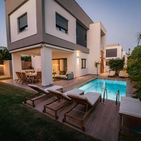 Com piscina ao ar livre e terraço, White Cove Villa, Limassol oferece acomodação em Pyrgos com Wi-Fi grátis e vista para o jardim.