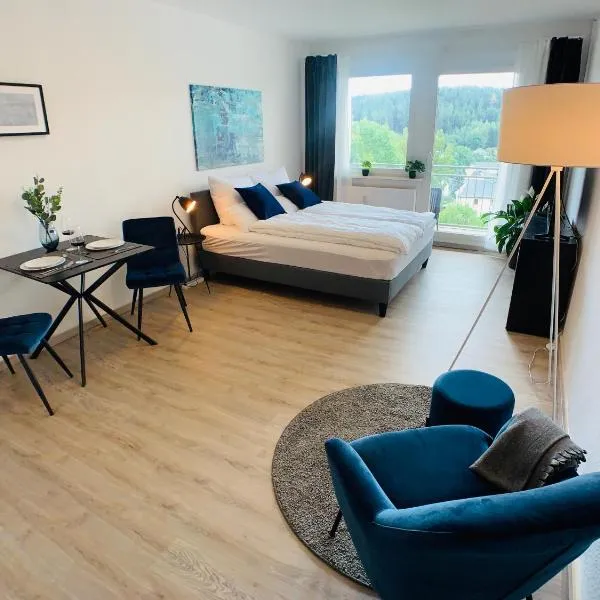 Apenas a 36 km de Exposição Alemã de Viagens Espaciais, Wieko Ferienwohnungen - Luxus Pur im Prinz von Preußen fornece acomodações em Bad Elster com um terraço, um bar e um multibanco.