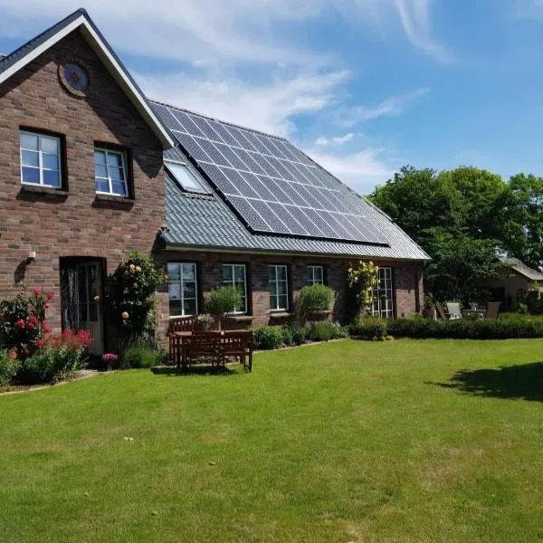 Exclusive Apartment in a beautiful restored north frisian house位于纽克尔逊。这家自助式公寓配有花园和免费私人停车位。 这家公寓配有1间卧室、1间浴室、床上用品、毛巾、平板电视、用餐区、设施齐全的厨房以及花园景露台。这家公寓也拥有休息区以及1间带淋浴设施、浴缸和免费洗浴用品的浴室。