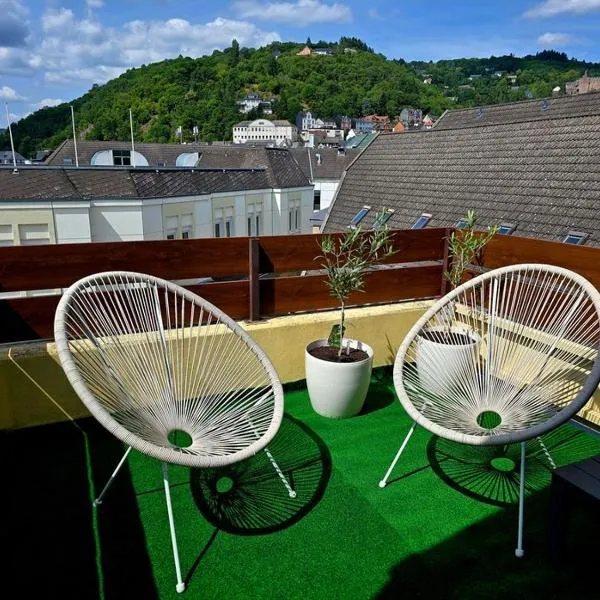 Bahnhofsnest位于伊达尔-奥伯施泰因。这家住宿距离萨尔洪斯吕克自然公园有29公里,为客人提供免费WiFi,内部提供私人停车位。 这家公寓配备2间卧室、1间浴室、床上用品、毛巾、平板电视、用餐区、设施齐全的厨房以及市景阳台。住宿配有1间带淋浴设施和浴缸的浴室,提供免费洗浴用品和吹风机。 法兰克福哈恩机场距离住宿有37公里。