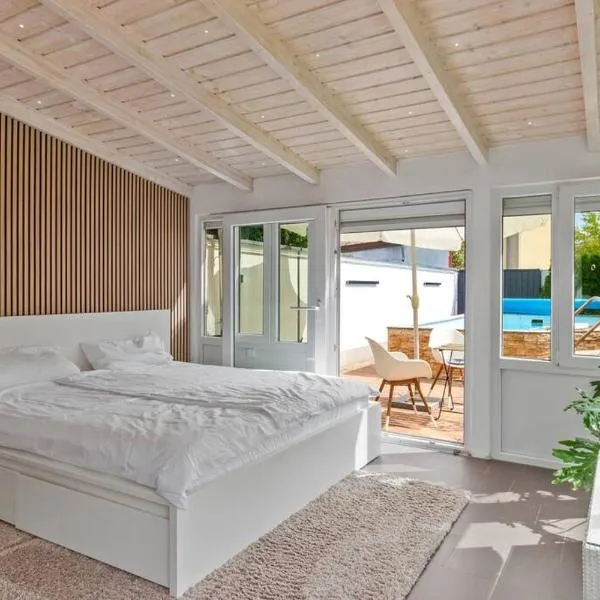 Bei Haags坐落于莱茵兰-普法尔茨州的Gommersheim,距离霍根海姆有不到32公里,配备免费WiFi、烧烤设施、露台和免费私人停车位。 每间房间都提供带冰箱的设施齐全的厨房、带沙发床休息区、平板电视以及带淋浴设施和吹风机的私人浴室。住宿还配备洗碗机、烤箱、炉灶、咖啡机和电热水壶。 这家公寓的客人可在住宿内部玩乒乓球,或在周边地区体验徒步或骑行。
