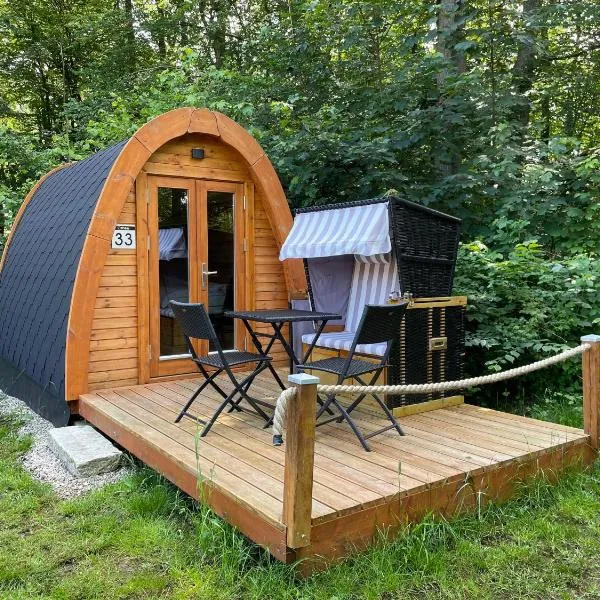 05 Premium Camping Pod "Gröde"坐落于Silberstedt,提供免费WiFi和平板电视等设施,距离弗伦斯堡火车站有42公里,距离福伦斯堡步行区有42公里。这家住宿距离弗伦斯堡大学有41公里,配备露台和免费私人停车位。 这家度假屋配有起居室以及带冰箱的设施齐全的小厨房。这家度假屋配备毛巾和床上用品。 这家度假屋提供儿童游乐场。