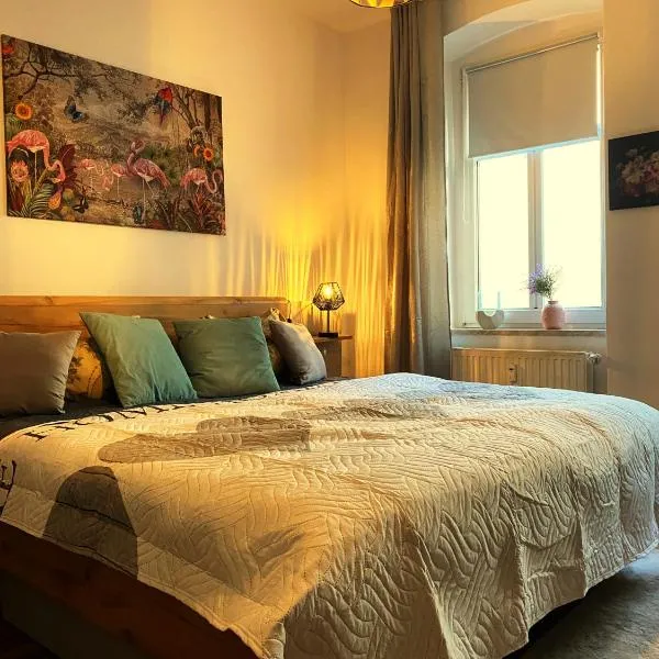 Magic Forest Design Apartment, 65 Zoll TV, Waschtrockner, beste Lage, am Markt坐落于格拉,提供免费WiFi和平板电视等设施,距离格拉文化会议中心有7分钟步行路程,距离格拉中央火车站有1.3公里。这家住宿享有花园景,距离格拉阿尔滕堡剧院有19分钟步行路程,距离格拉动物园有3.2公里。