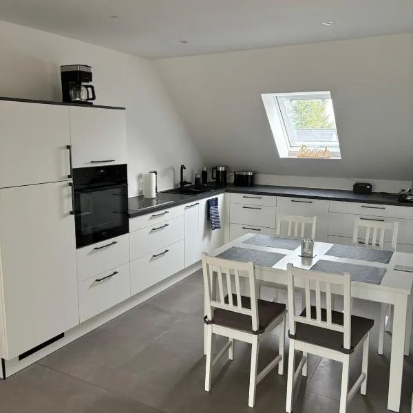 Zwischen den Wellen坐落于霍尔斯泰因地区奥尔登堡,距离费马恩海峡有22公里,距离汉萨公园有32公里。客人可以在周边地区体验骑行。这家公寓享有花园景,也配备免费WiFi。 这家公寓拥有2间卧室、带卫星频道的电视、带洗碗机和烤箱的设施齐全的厨房以及1间带淋浴设施的浴室。1间浴室提供免费洗浴用品。 这家公寓距离瓦尔诺水鸟自然保护区有40公里,距离普劳恩火车总站有42公里。