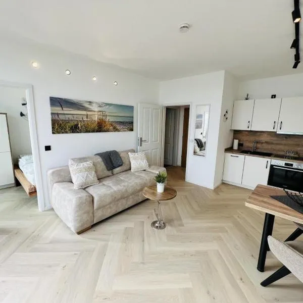 Elegantes Meerblick-Apartment坐落于希尔克道夫,距离希尔克斯多夫海滩(Sierksdorf Beach)有不到一公里,距离汉萨公园有9分钟步行路程,距离吕贝克中央车站有29公里。内部提供私人停车位。 这家公寓提供阳台,享有海景,拥有1间卧室、起居室、电视、带冰箱和洗碗机的设施齐全的厨房以及1间带浴缸的浴室。这家公寓也配有休息区和1间浴室。