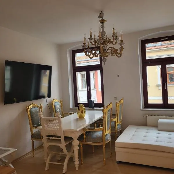 Urban Suite Pirna Altstadt am Markt坐落于皮尔纳,享有市景,提供免费WiFi。这家公寓坐落于一栋建造于19世纪年的建筑内,距离皮尔尼茨城堡和公园有8.2公里,距离国王岩堡垒有14公里。 这家公寓配有1间卧室、起居室、带冰箱和咖啡机的设施齐全的厨房以及1间带淋浴设施和吹风机的浴室。这家公寓还配备带有线频道的平板电视以及1间带浴缸的浴室。