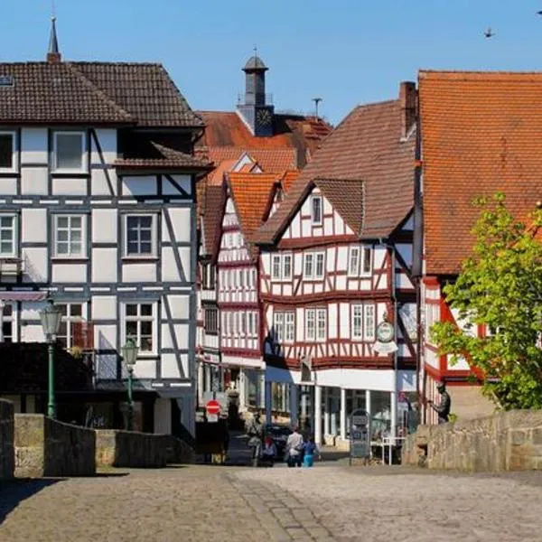 Historischer Marktplatz位于Spangenberg,距离卡塞尔中央车站有45公里,距离卡塞尔-威廉山车站有48公里。客人可以在周边地区体验骑行。这家住宿距离格林兄弟博物馆有45公里,为客人提供免费WiFi,内部提供私人停车位。 这家公寓享有市景,配有2间卧室以及1间带淋浴设施的浴室。这家公寓还提供电视以及1间带吹风机的浴室。 这家公寓距离橘园庄园有42公里。