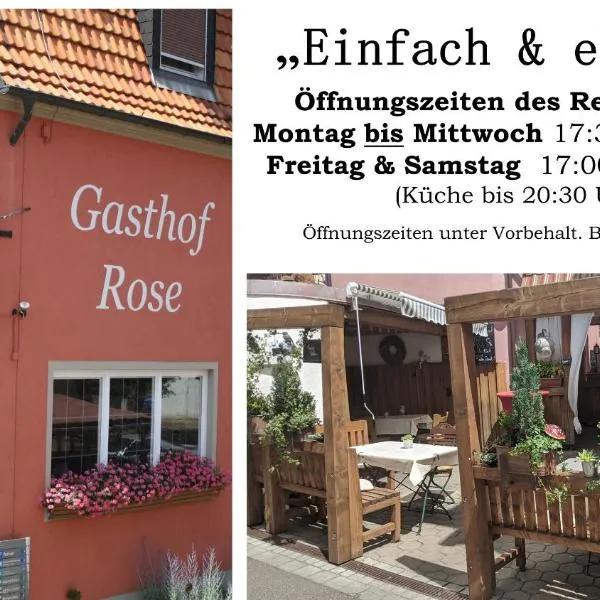 Gasthof Hotel Rose位于Obereisenheim,提供免费WiFi、平板电视和餐厅。 这家住宿加早餐旅馆提供单点或素食早餐。 客人可以在附近体验骑行。 Gasthof Hotel Rose距离维尔茨堡中央车站有24公里,距离维尔兹堡国会中心有25公里。纽伦堡机场距离住宿有93公里。