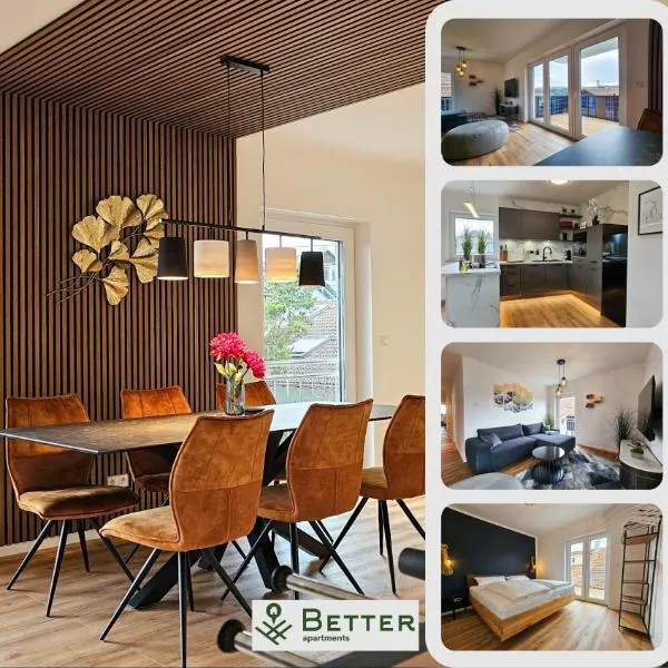 Allgäu Suites - Innenstadt, Schlafzimmer, Küche, Parkplatz möglich, Dachterrasse坐落于肯普滕,配备免费WiFi,距离菲森博物馆有46公里,距离圣茫修道院有46公里。 房间配有带冰箱和咖啡机的设施齐全的厨房、平板电视以及带淋浴设施的私人浴室。 这家公寓距离城边城市走廊有46公里,距离新天鹅堡有48公里。