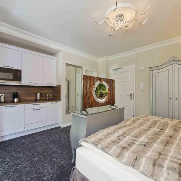 Historisches Eckermannhaus - Apartments位于魏玛,提供餐厅,享有市景,距离席勒故居有几步路,距离公爵夫人安娜·阿玛利亚图书馆有4分钟步行路程。住宿提供免费WiFi,可以安排额外收费的私人停车位。 房间配有平板电视、私人浴室以及带冰箱的设施齐全的厨房。住宿还提供炉灶和吐司机以及咖啡机和电热水壶。 这家公寓提供自行车租赁服务。