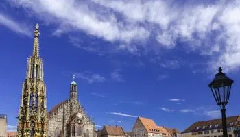Hauptmarkt square in the old town is home to an unusual-looking church and a Gothic fountain, spectacularly lit during the annual Nuremberg Christmas markets. Selling everything from wooden toys to lebkuchen (gingerbread), these are widely considered the best Christmas markets in Germany.
