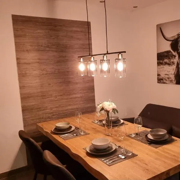 Hof Spöde坐落于吕丁豪森,距离博德尔施文格堡仅有32公里,享有花园景,配备免费WiFi和免费私人停车位。这家公寓坐落于一栋建造于1997年的建筑内,距离多特蒙德啤酒博物馆有33公里,距离霍斯博物馆有34公里。 这家公寓提供露台,享有山景,拥有1间卧室、起居室、平板电视、带冰箱和洗碗机的设施齐全的厨房以及1间带淋浴设施的浴室。这家公寓还提供休息区、洗衣机以及1间带吹风机的浴室。
