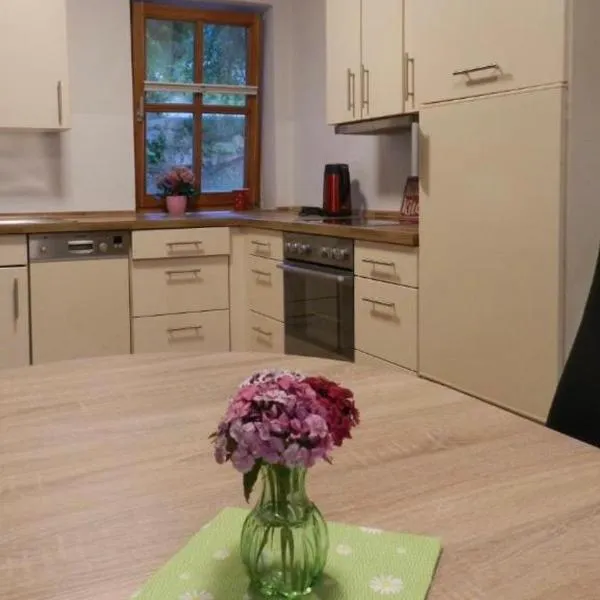 Ferienwohnung Im Vilstal坐落于Rieden,配有spa浴缸。这家住宿的客人可以使用阳台、免费私人停车位和免费WiFi。 这家公寓享有花园景,配备露台,配有3间卧室、起居室、卫星频道平板电视、设施齐全的厨房以及1间带淋浴设施和浴缸的浴室。1间浴室提供吹风机。 这家公寓距离雷根斯堡中央车站有45公里,距离雷根斯堡大教堂有45公里。纽伦堡机场距离住宿有82公里。
