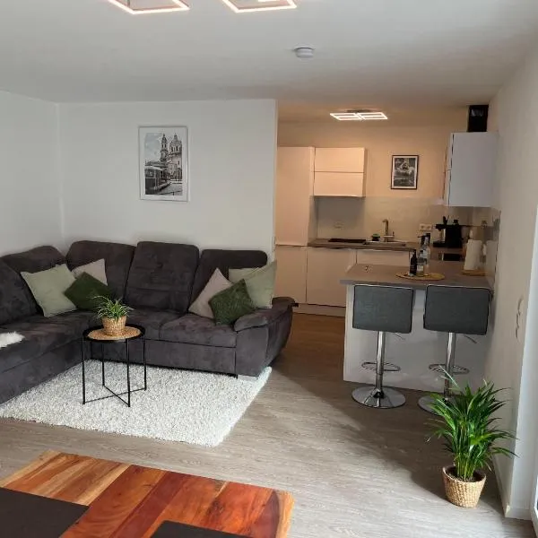 "City Chic Apartment" im Gassen Geflüster位于施韦比施哈尔。这家公寓提供餐厅和免费WiFi。 这家公寓配有2间卧室、起居室、带冰箱和咖啡机的设施齐全的厨房以及1间带淋浴设施和吹风机的浴室。这家公寓也提供休息区和1间浴室。 斯图加特机场距离住宿有117公里。