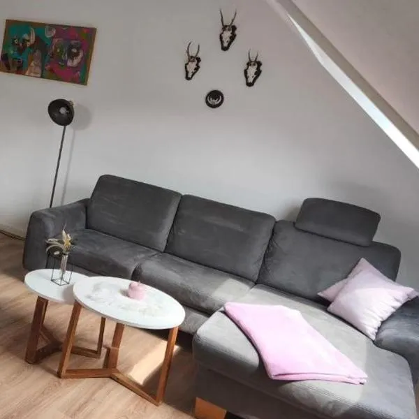 Janinas Loft坐落于温特贝格中心,距离卡拉阿斯藤山仅有6.1公里,距离圣乔治山有3.8公里,提供带免费WiFi的花园景住宿。这家公寓距离特拉普尔滑车有20公里,距离奥尔斯贝格音乐厅有20公里。 这家公寓配有2间卧室、起居室、带冰箱和咖啡机的设施齐全的厨房以及1间带浴缸和免费洗浴用品的浴室。这家公寓还配备平板电视以及1间带吹风机的浴室。 住宿配备带飞镖的游戏室。