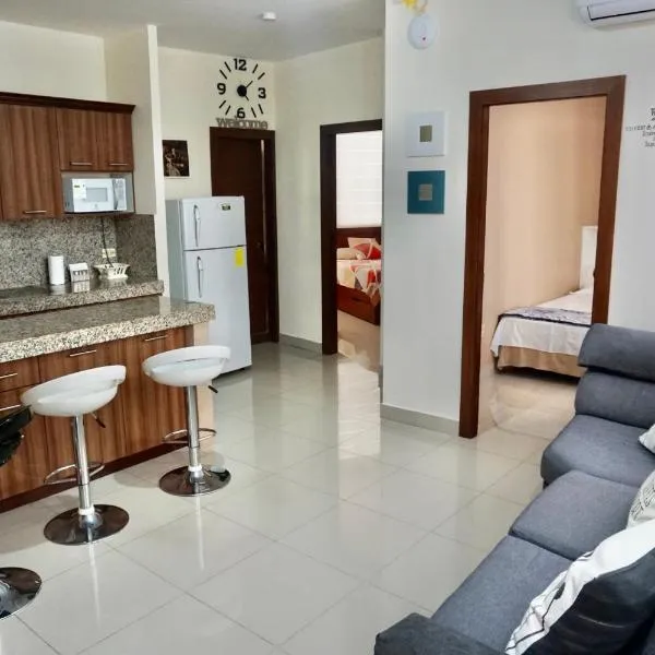 Suite en edificio Samborondon坐落于Samborondón,配有客房和私人泳池。这家住宿距离圣弗朗西斯教堂有7.9公里,配备露台和免费私人停车位。 这家空调公寓配有1间独立卧室、起居室、设施齐全的厨房以及2间浴室。这家公寓还提供平板电视以及2间带热水浴池的浴室。 这家公寓距离马雷贡2000有8.4公里,距离圣安娜山灯塔有6.4公里。瓜亚基尔机场距离住宿有5公里。