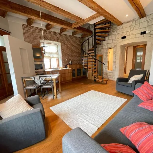 Old town Luxury Loft with Sauna坐落于库雷萨雷,距离库雷萨雷海滩(Kuressaare Beach)仅有15分钟步行路程,配备花园、露台和免费WiFi。这家公寓配有免费私人停车位。客人可以在周边地区体验徒步和骑行等活动。 这家公寓配有2间卧室、起居室、带冰箱和咖啡机的设施齐全的厨房以及2间带淋浴设施和吹风机的浴室。这家公寓也配备休息区和2间浴室。...