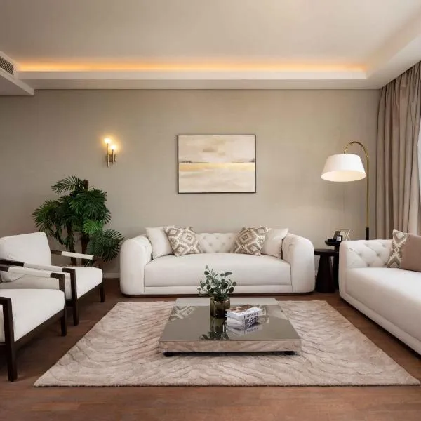 Set in Sheikh Zayed, 26 km from Giza Pyramids, Luxerious apartment with a private garden and pool access offers accommodation with free WiFi, a terrace or a balcony and access to a garden and an...