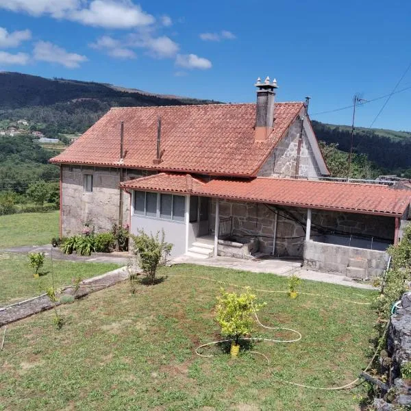 O XARDÍN DA FRAGA享有河景,配备阳台和咖啡机,距离蓬特韦德拉地铁站约有33公里。入住这家度假屋的客人可以使用免费WiFi和庭院。 这家度假屋享有山景,提供露台,配有3间卧室、起居室、卫星频道平板电视、设施齐全的厨房以及3间带坐浴盆和淋浴设施的浴室。这家度假屋还提供休息区、洗衣机以及3间带吹风机的浴室。 这家度假屋提供烧烤设施。