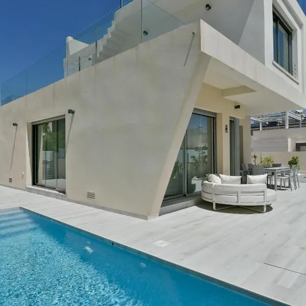 Beach & Golf seafront house Campoamor Alicante se află în Campoamor și are cazare cu WiFi gratuit și vedere la mare, precum și biciclete gratuite, o piscină în aer liber și o terasă.