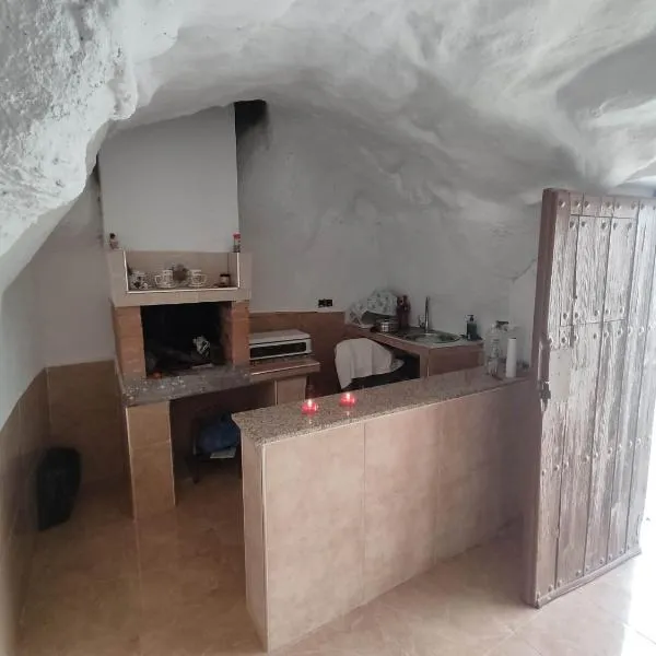 Cueva Rural con Encanto位于库埃瓦斯德拉尔曼索拉,提供露台,享有山景,距离滨海高尔夫球场有24公里,距离沙漠泉高尔夫俱乐部有12公里。这家度假屋配备免费私人停车位。客人可以在周边地区体验徒步、垂钓和浮潜等活动。 这家度假屋配有1间卧室、起居室、带用餐区的设施齐全的厨房以及1间带淋浴设施的浴室。这家度假屋也为客人提供休息区和1间浴室。