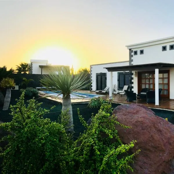 Casa Lero坐落于Las Breñas,配有私人泳池,享有山景。这家住宿距离兰萨罗特岛火山公园有14公里,提供户外游泳池和免费私人停车位。 这家别墅提供3间卧室、2间浴室、床上用品、毛巾、平板电视、用餐区、设施齐全的厨房以及海景露台。这家空调别墅还配备休息区、洗衣机以及2间带淋浴设施的浴室。 这家别墅距离题玛法雅国家公园有18公里,距离兰萨罗特岛高尔夫度假村有21公里。