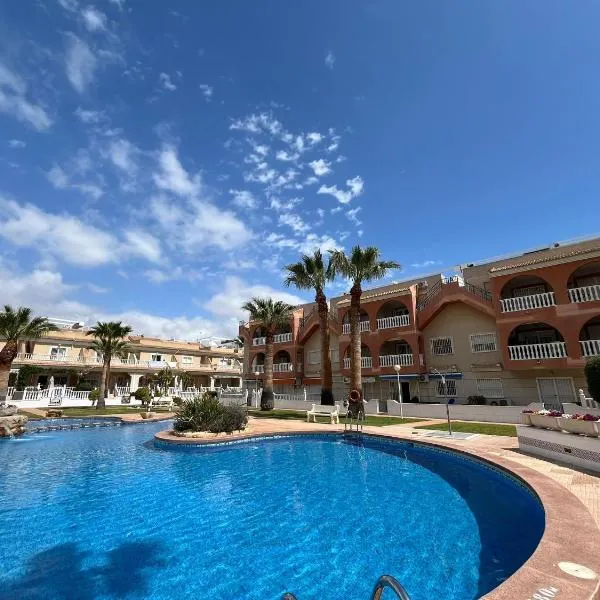 Geweldig Appartement in Los Alcázares direct aan de Boulevard位于洛斯阿尔卡萨雷斯,配备带免费WiFi的池景客房,配有户外游泳池、花园和露台。这家公寓配备免费私人停车位。客人可以在周边地区体验浮潜和骑行等活动。 这家空调公寓配有2间卧室、起居室、带冰箱和咖啡机的设施齐全的厨房以及1间带浴缸的浴室。这家公寓也拥有1间浴室。