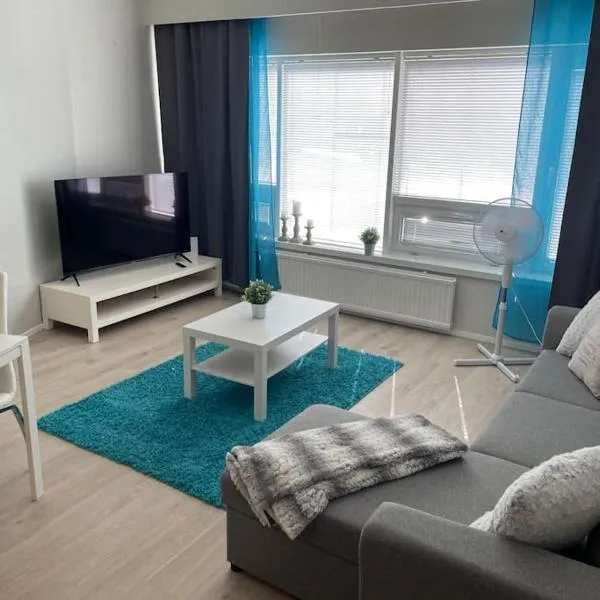 Nice apartment in the center of Tornio 位於托爾尼奧,設有露台。這間住宿的住客可以使用陽台、免費私人停車位和 WiFi(免費)。 這間 2 臥室公寓設有起居室、平面電視,廚房設備齊全且附冰箱和洗碗機,以及 1 間附吹風機的衛浴。為了讓您更加方便,住宿可提供額外收費的毛巾和寢具。 凱米-托爾尼奧機場距離住宿 25 公里。