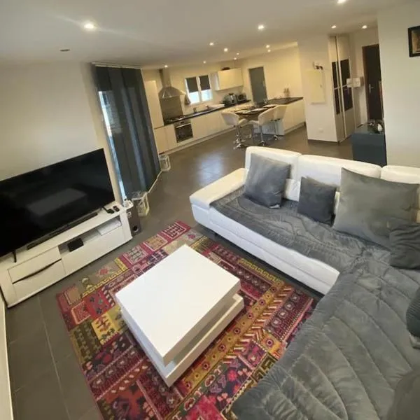 Un bon momentde dente位于博讷维尔,享有花园景,距离日内瓦大喷泉有28公里,距离圣皮埃尔大教堂有28公里。这家住宿距离罗什博览会有10公里,提供花园和免费私人停车位。 这家公寓提供露台,享有山景,配有1间卧室、起居室、平板电视、带冰箱和洗碗机的设施齐全的厨房以及1间带淋浴设施的浴室。这家公寓还配备休息区、洗衣机以及1间带免费洗浴用品的浴室。
