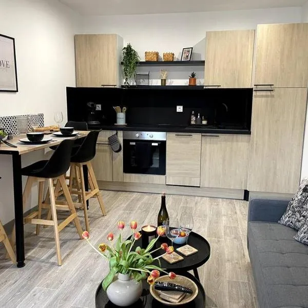 Bienvenu à l’appart bien-être位于Souvigny,距离国家戏服中心有11公里,距离穆兰大教堂有12公里,距离穆兰阿列河火车站有12公里。这家公寓享有市景和花园景,也拥有免费WiFi。 这家公寓配有1间卧室、起居室、带冰箱和咖啡机的设施齐全的厨房以及1间带淋浴设施和免费洗浴用品的浴室。这家公寓还提供休息区、洗衣机以及1间带吹风机的浴室。