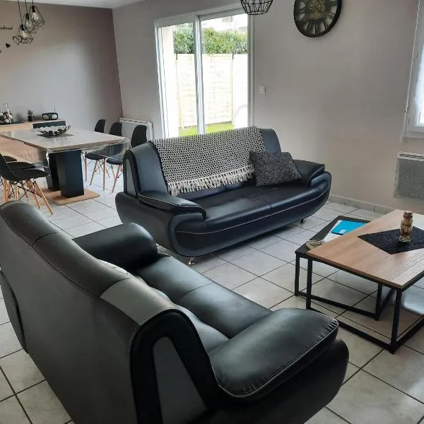 Les Coquelicots En Baie De Somme位于Saint-Blimont,距离朗杜弗里埃尔—维尔顿贝尔克火车站有44公里,配备露台、花园和免费WiFi。这家舒适型度假屋享有花园景,距离迪佩火车站有50公里。 这家度假屋配备2间卧室、带洗碗机和烤箱的厨房以及2间带淋浴设施、免费洗浴用品和洗衣机的浴室。这家度假屋还提供电视以及2间带吹风机的浴室。