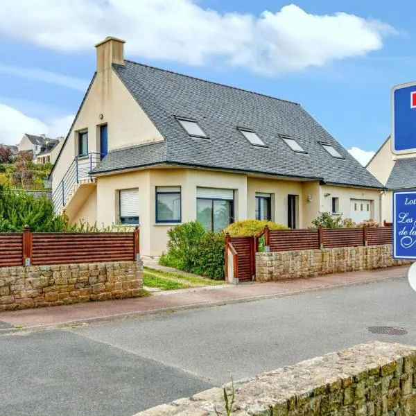 entre terre et mer位于圣波勒-德莱昂,享有花园景,提供免费WiFi。这家住宿距离莫尔莱湾高尔夫有11公里,提供花园和免费私人停车位。 这家2卧室度假屋配有起居室、带有线频道的平板电视、带冰箱和微波炉的设施齐全的厨房以及1间带淋浴设施的浴室。这家度假屋也拥有1间浴室。 这家度假屋还为客人提供儿童游乐场。
