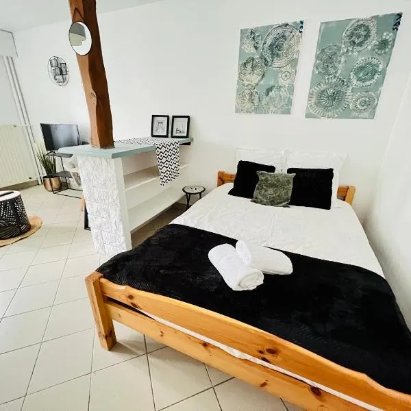 Studio des huis Kitchenette-Salle de bain-Terrasse cuenta con hospedaje situado en Bazoncourt, está establecido a 19 km de Centre Pompidou-Metz, a 20 km de Metz Train Station y a 48 km de Thionville...