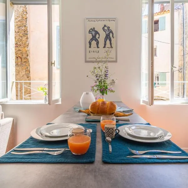 Douce Provence - Cœur de village位于科蒂尼亚克。入住这家公寓的客人可以使用免费WiFi。 这家公寓配有1间卧室、起居室、带冰箱和咖啡机的设施齐全的厨房以及1间带淋浴设施和吹风机的浴室。这家公寓也为客人提供休息区和1间浴室。 土伦-耶尔机场距离住宿有68公里。