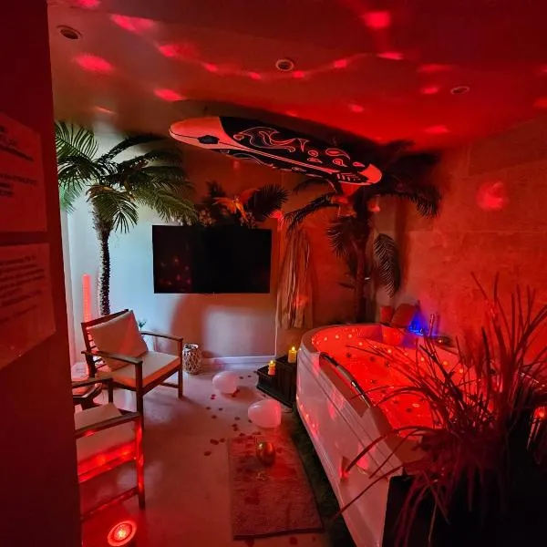 Love room L'écrin tropical坐落于Aubers,距离菲烈克斯-博拉尔特球场有20公里,距离卢浮宫朗斯分馆有21公里,提供露台和空调。这家住宿距离圣菲利伯特地铁站有16公里,配备花园和免费私人停车位。 这家住宿加早餐旅馆提供平板电视。这家住宿加早餐旅馆配备毛巾和床上用品。 这家住宿加早餐旅馆的客人可以享用欧陆式早餐。