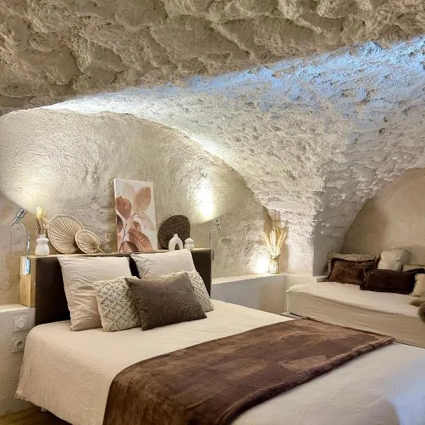 Suite romantique d'Isoarde des Baux - Château de Rochetaillée位于圣于兹,提供带免费WiFi的池景客房,配备季节性室外泳池、花园和私家海滩。这家住宿加早餐旅馆配有免费私人停车位。客人可以在周边地区体验徒步和垂钓等活动。 这家空调住宿加早餐旅馆配有1间独立卧室、、1间带免费洗浴用品和吹风机的浴室以及起居室。