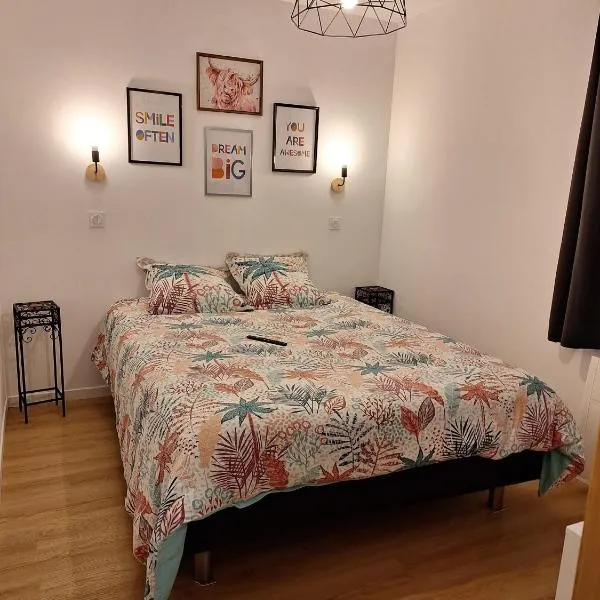 Amarante des Landes坐落于Cap de Pin,配有花园,距离艺术与传统博物馆有不到42公里,距离比斯卡罗斯湖有44公里。住宿配备免费WiFi,内部提供私人停车位。 这家度假屋享有花园景,为客人提供露台、休息区、平板电视、带冰箱和烤箱的设施齐全的厨房以及带淋浴设施和免费洗浴用品的私人浴室。住宿还提供微波炉、炉灶、吐司机、咖啡机和电热水壶。...