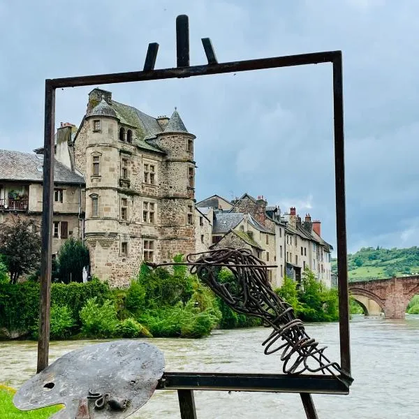 Appartement au cœur d'Espalion La Cabane du Lot享有花园景,配备露台和庭院,距离罗德火车站约有30公里。这家公寓提供免费WiFi,距离兰斯主教座堂有32公里,距离丹尼斯-普希博物馆有32公里。 这家公寓配有1间卧室、起居室、带冰箱和咖啡机的设施齐全的厨房以及1间带淋浴设施和吹风机的浴室。这家公寓也拥有休息区和1间浴室。