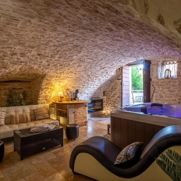 Duplex Safari jusqu'à 4 personnes, Spa XXL, day use, cinéma, cascade et lit sous les arbres坐落于布尔昆,距离里昂欧洲展览中心有34公里,距离安盟竞技场有38公里,配备免费WiFi。客人可以使用热水浴池。住宿配有spa浴缸。 客房配有平板电视以及带淋浴设施、热水浴池和吹风机的私人浴室。