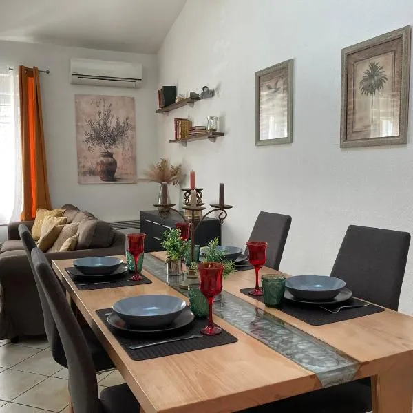 Maison de ville, Jacuzzi,garage位于Bernis,距离南蒙彼利埃天顶音乐厅有39公里。客人可以使用热水浴池。这家住宿距离尼姆展览馆有11公里,提供露台和免费私人停车位。 这家空调公寓配有2间卧室、起居室、带冰箱和咖啡机的设施齐全的厨房以及2间带热水浴池的浴室。这家公寓也为客人提供2间浴室。