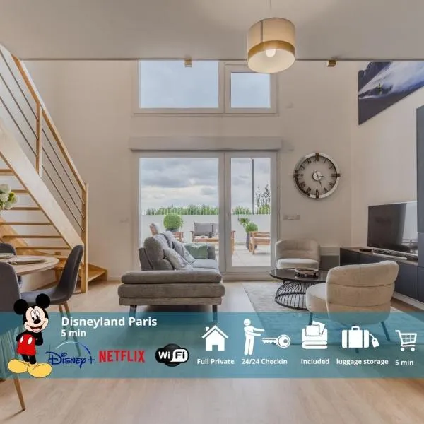 Sa loob ng 4.5 km ng Disneyland Paris at 4.6 km ng Val d'Europe RER Station, nag-aalok ang Cosy Appart à 5 min de Disneyland Paris - Parking gratuit ng libreng WiFi at hardin.
