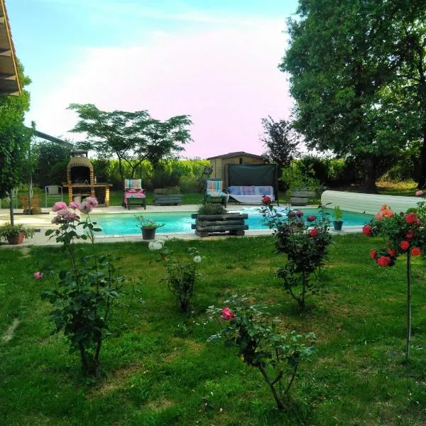 Chalet du moulin位于Cussac-Fort-Medoc,配备带免费WiFi的花园景客房,配有季节性室外泳池和露台。这家自助式住宿加早餐旅馆拥有私人泳池、花园和免费私人停车位。 这家住宿加早餐旅馆提供电视。这家住宿加早餐旅馆配备毛巾和床上用品。 这家住宿加早餐旅馆距离马特穆特大西洋球馆有33公里,距离波尔多葡萄酒博览会有34公里。波尔多-梅里尼亚克机场距离住宿有40公里。