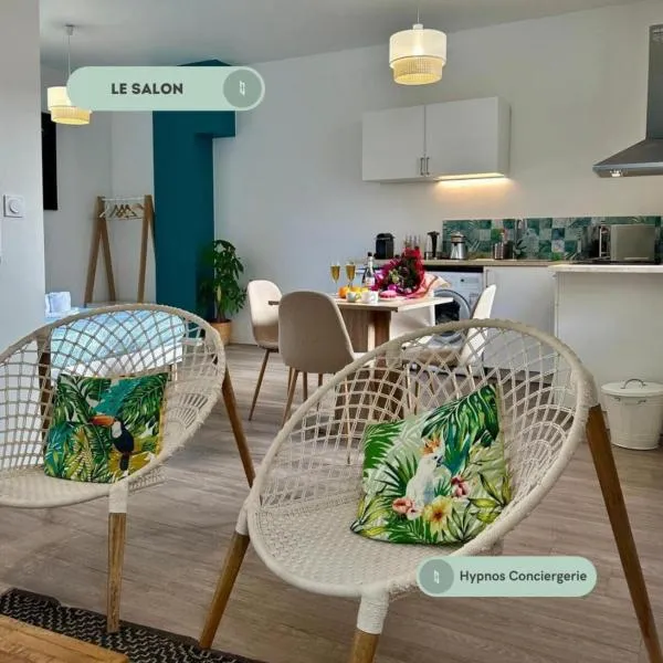 Objekat Gîte L' Escale Ponote - Centre ville - Appart 90m2 nudi besplatan WiFi i terasu, a udaljen je nekoliko koraka od znamenitosti Kongresni i kulturni centar Pierre Cardinal i 5 min. hoda od...