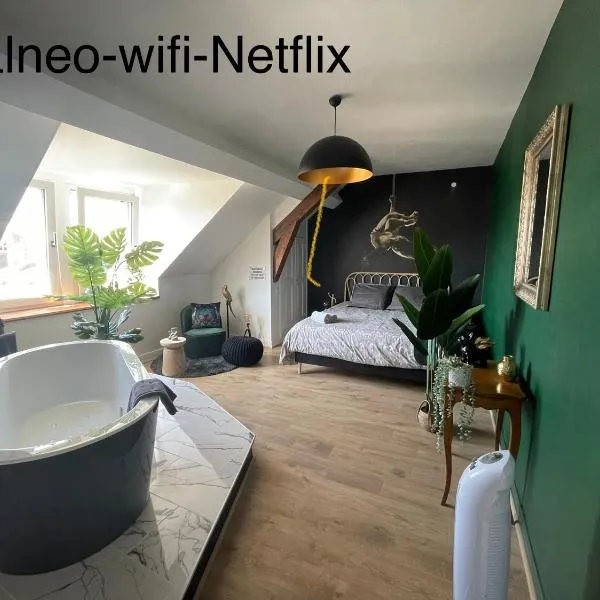Groom Epernay - Jacuzzi & Champagne位于埃佩尔奈,距离伊帕内火车站有16分钟步行路程。客人可以使用热水浴池。这家公寓提供免费WiFi,距离小姐别墅有27公里,距离莱奥·拉格朗日公园有27公里。 这家公寓配有2间卧室、起居室、带冰箱和咖啡机的设施齐全的厨房以及1间带淋浴设施和免费洗浴用品的浴室。1间浴室配有浴缸,也配有吹风机,提供毛巾和床上用品。