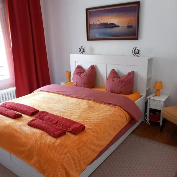 Gîte le 11 位於 Le Merlerault,提供 WiFi(免費),且住宿可享市景,設有露台。這間住宿享有園景,距離 Halle au Blé 41 公里,距離布維宏高爾夫球場(Golf of Bois-Francs) 44 公里。 這間度假屋位於底樓,設有 2 間臥室、設備齊全且附冰箱和烤箱的廚房、起居室以及平面電視。這間度假屋提供毛巾和寢具。